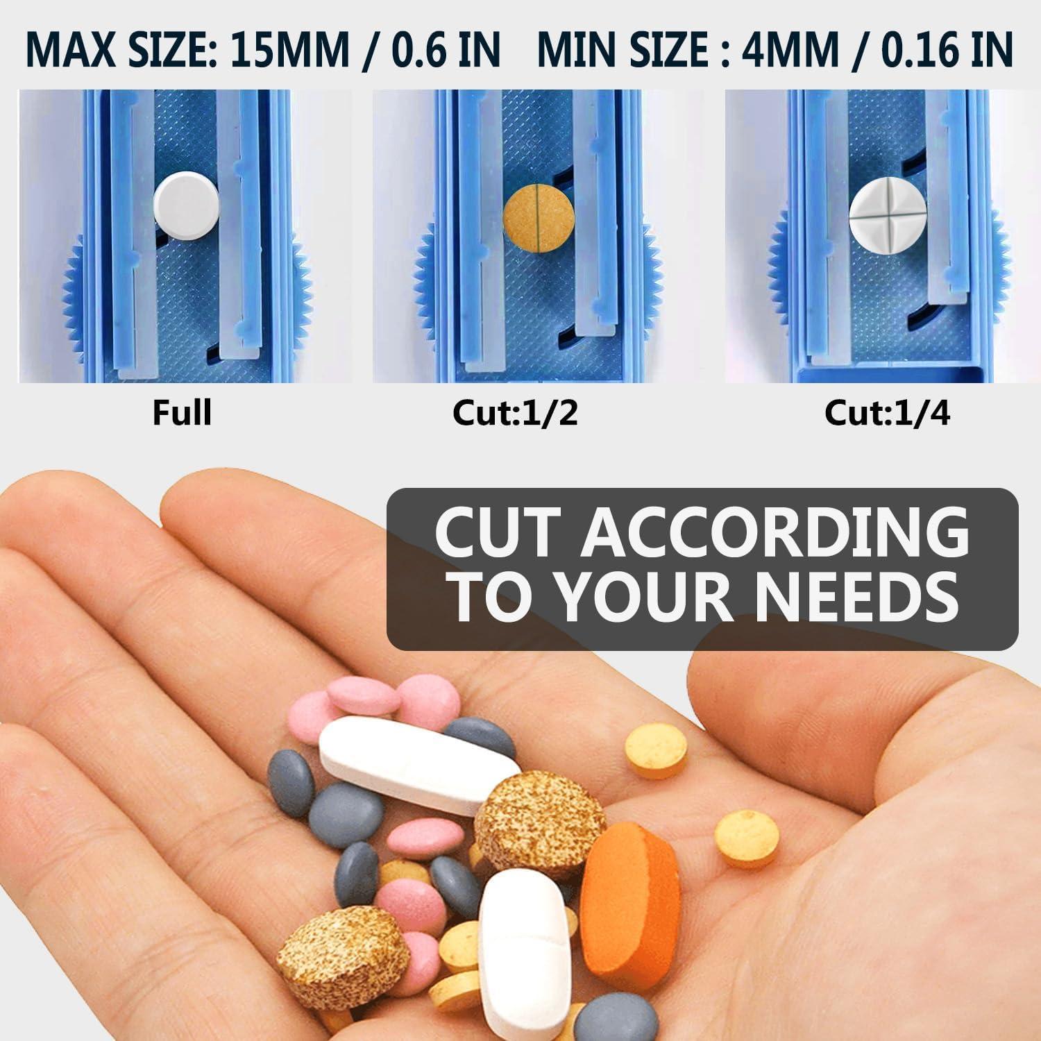 【𝐂𝐮𝐭𝐬 𝐩𝐢𝐥𝐥𝐬 𝐰𝐢𝐭𝐡 𝐚 𝐝𝐢𝐚𝐦𝐞𝐭𝐞𝐫 𝐨𝐟 𝟎.𝟓𝟗 𝐢𝐧𝐜𝐡 𝐚𝐧𝐝 𝐛𝐞𝐥𝐨𝐰】Our pill splitter can cut all pills from 0.1 to 0.59 inch (2.5mg-480mg), perfectly compatible with this range of size pills.