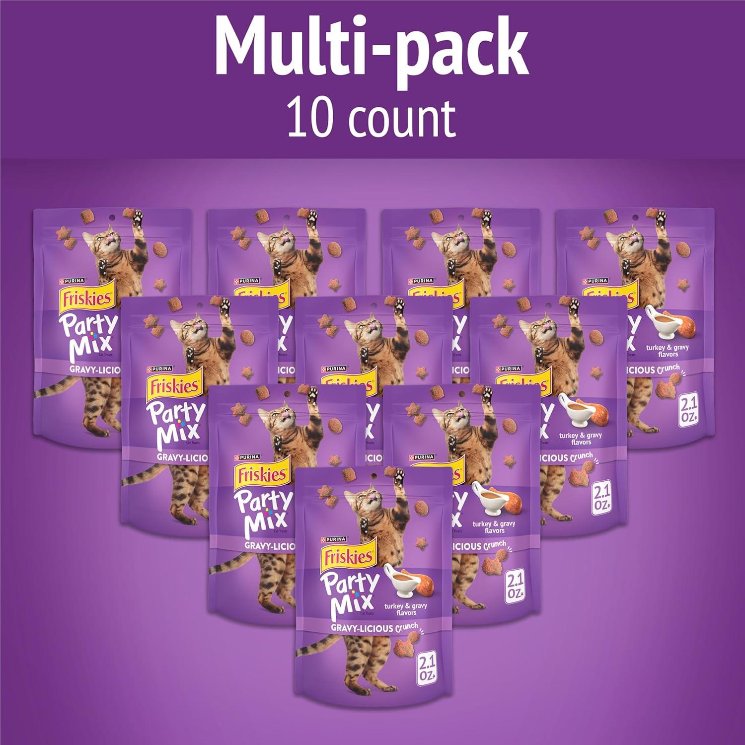Purina Friskies Cat Treats, Party Mix Gravy-licious Crunch Turkey and Gravy Flavors - (Pack of 6) 6 oz. Pouches(2.1 Ounce (Pack of 10))