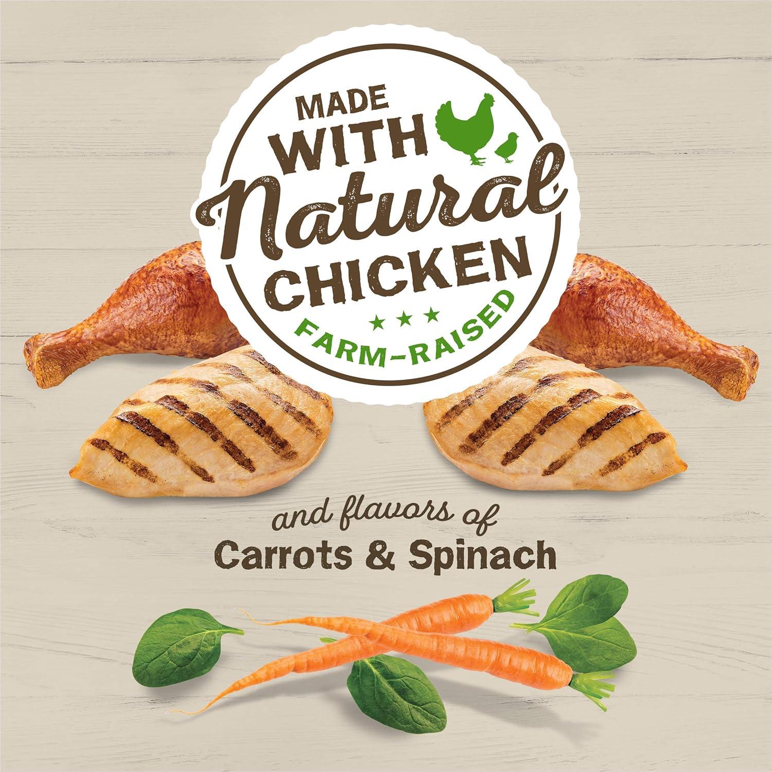 Made with natural. farm-raised chicken. Flavors of carrots and spinach add flavorful variety