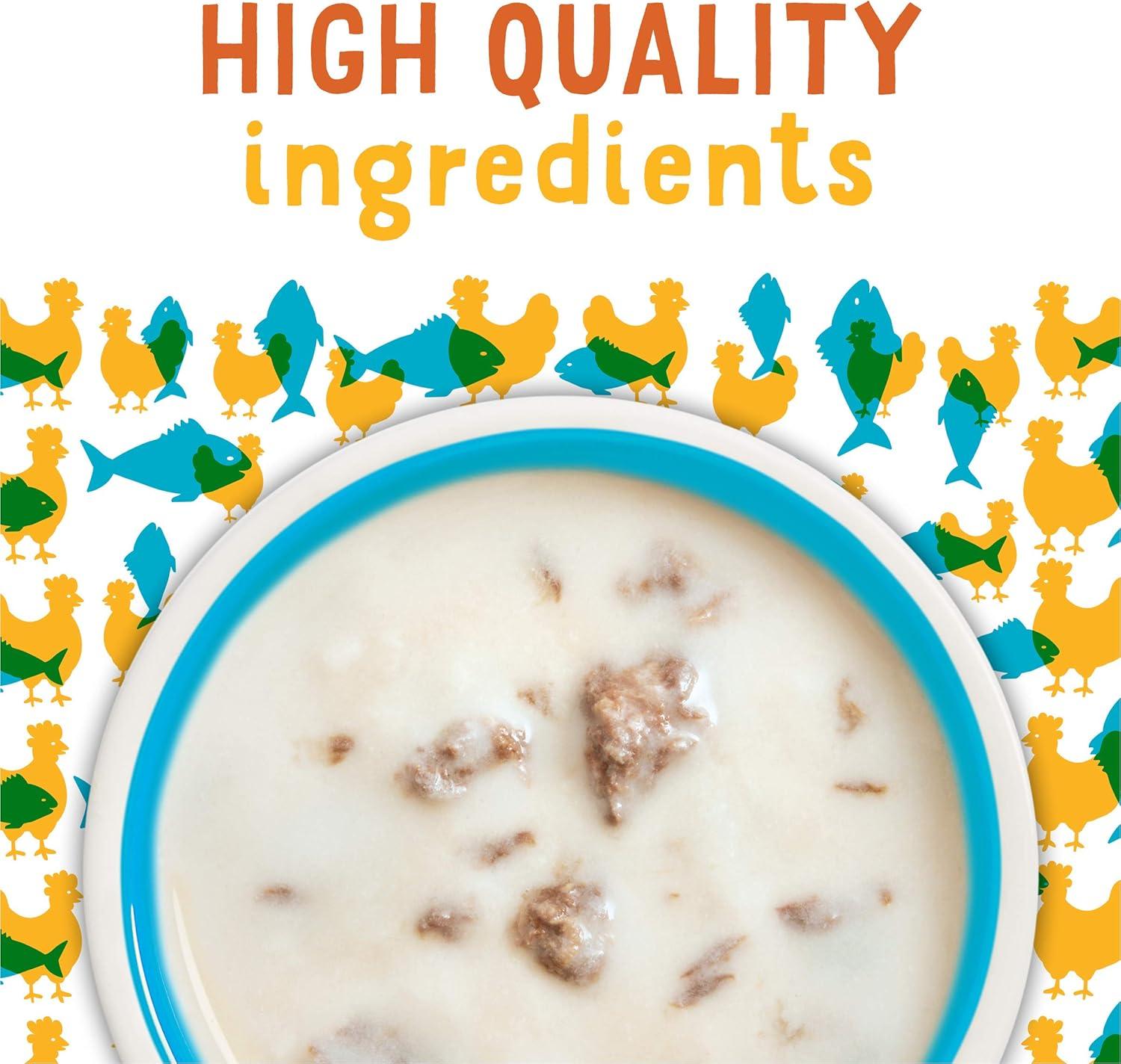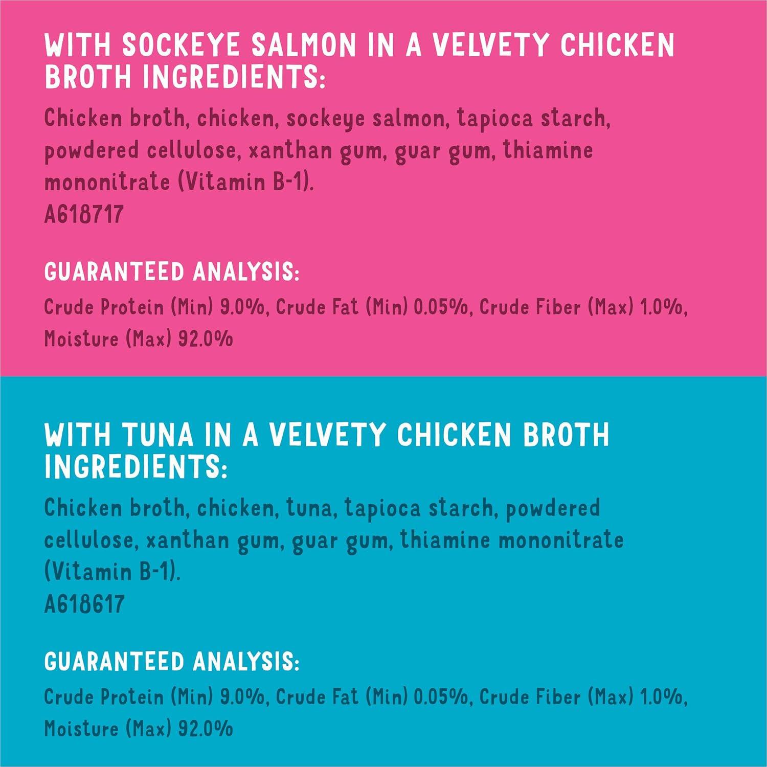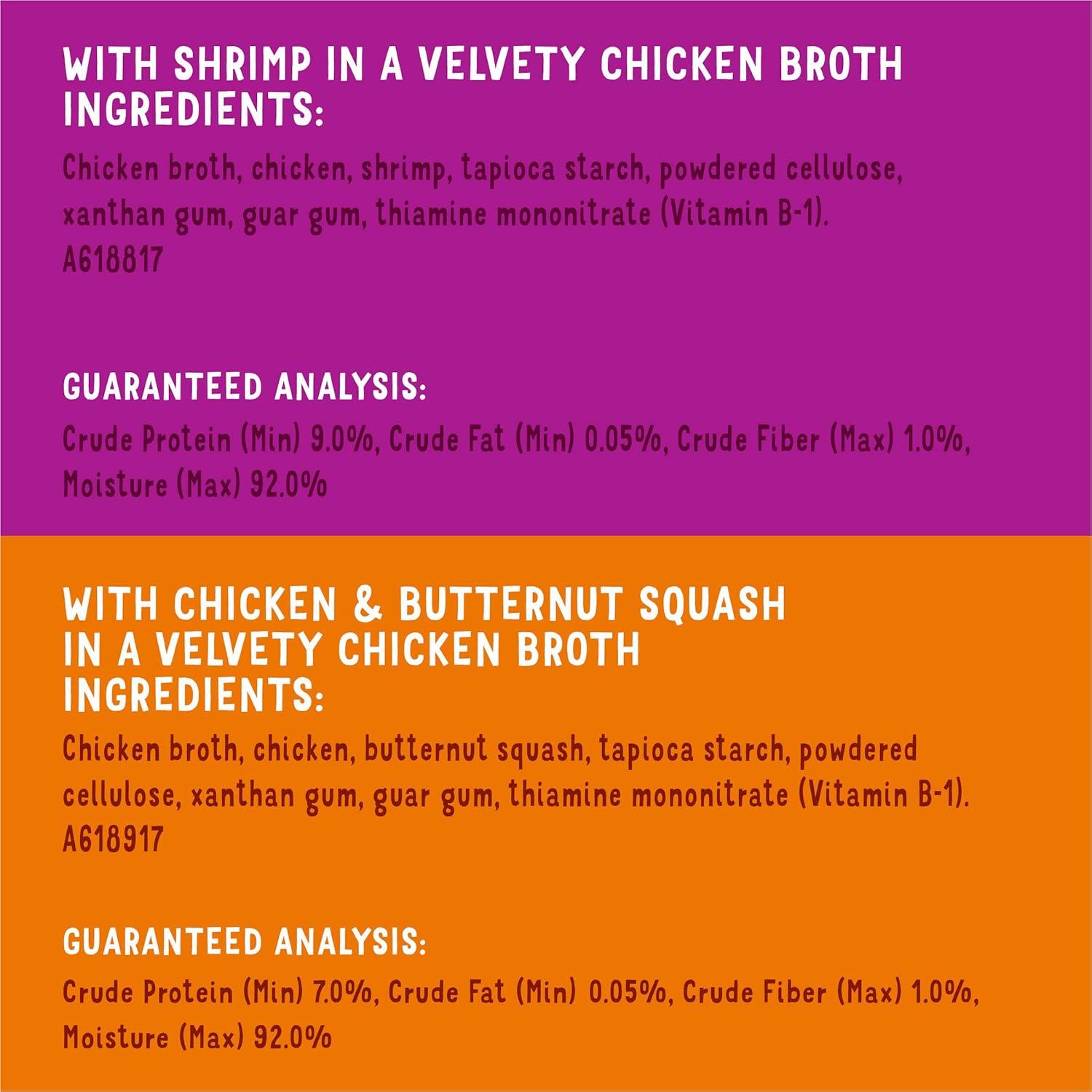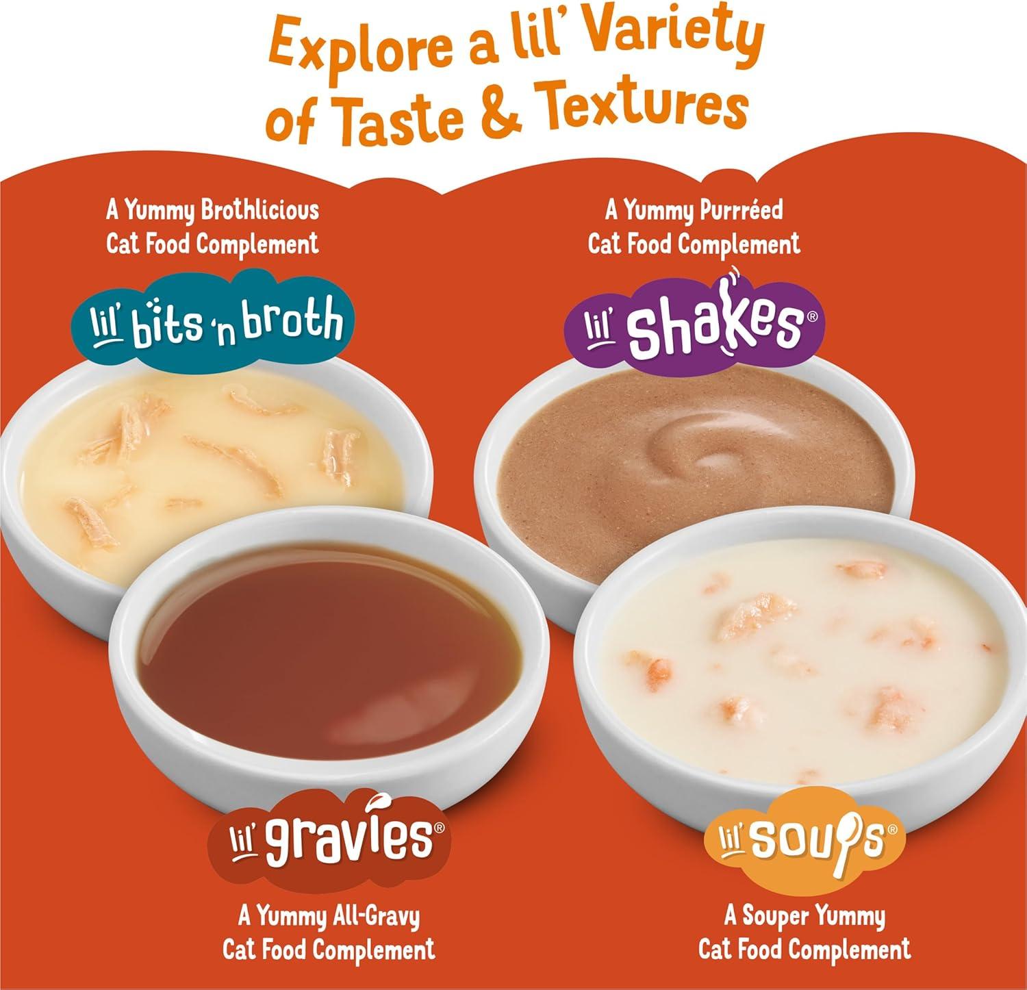 Dote on your darling cat when you offer her recipes from this Purina Friskies Lil' Soups adult wet cat food complement variety pack. Two delectable recipes make it easy to keep her taste buds satisfied. With real seafood in every cup, these adult wet cat food complements bring delicious goodness to her dish. She's sure to love the tender texture and enticing aroma found in every serving, and you can feel good about serving her snacks that are free from fillers and by-products. A velvety broth rounds out each cat complement variety, bringing added flavor and moisture to every whisker-licking bite. These treats for cats feature a rich aroma that calls out to her every time you open a cup, letting her know something amazing is coming her way. Give your cat what she needs when she needs it with an order of Purina Friskies Lil' Soups adult wet cat food complement variety pack from Amazon.com.