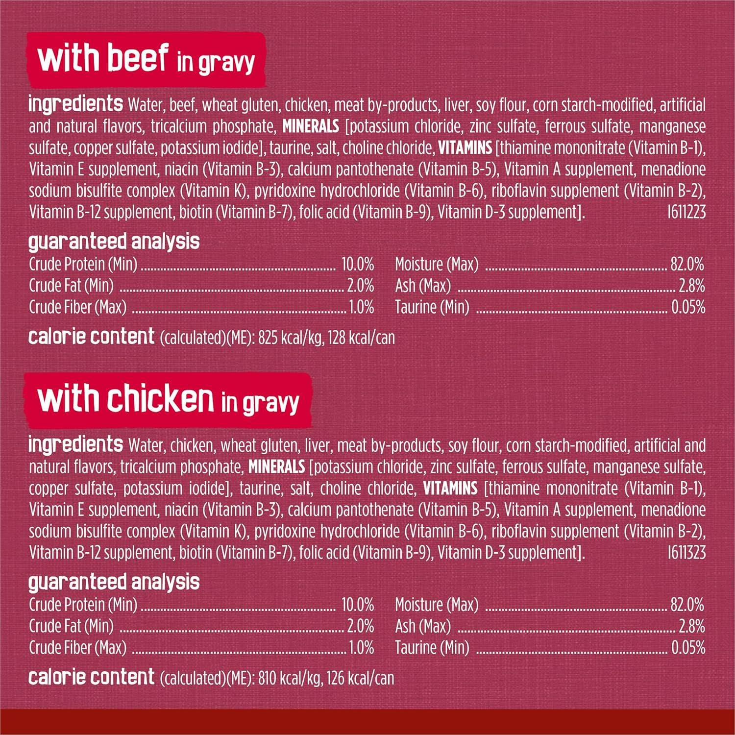 Real beef. chicken or turkey for the tastes cats love. Savory gravy adds moisture and flavor