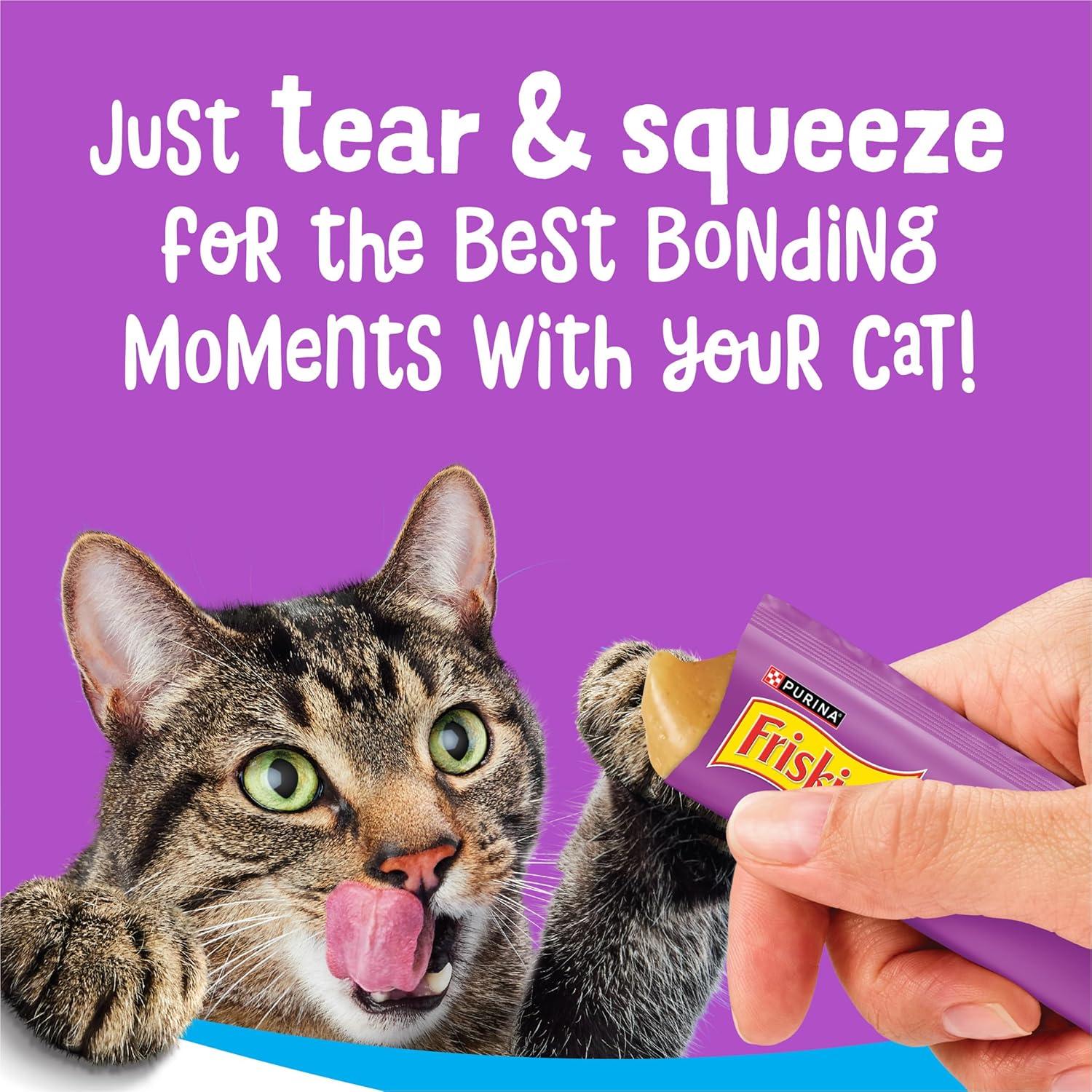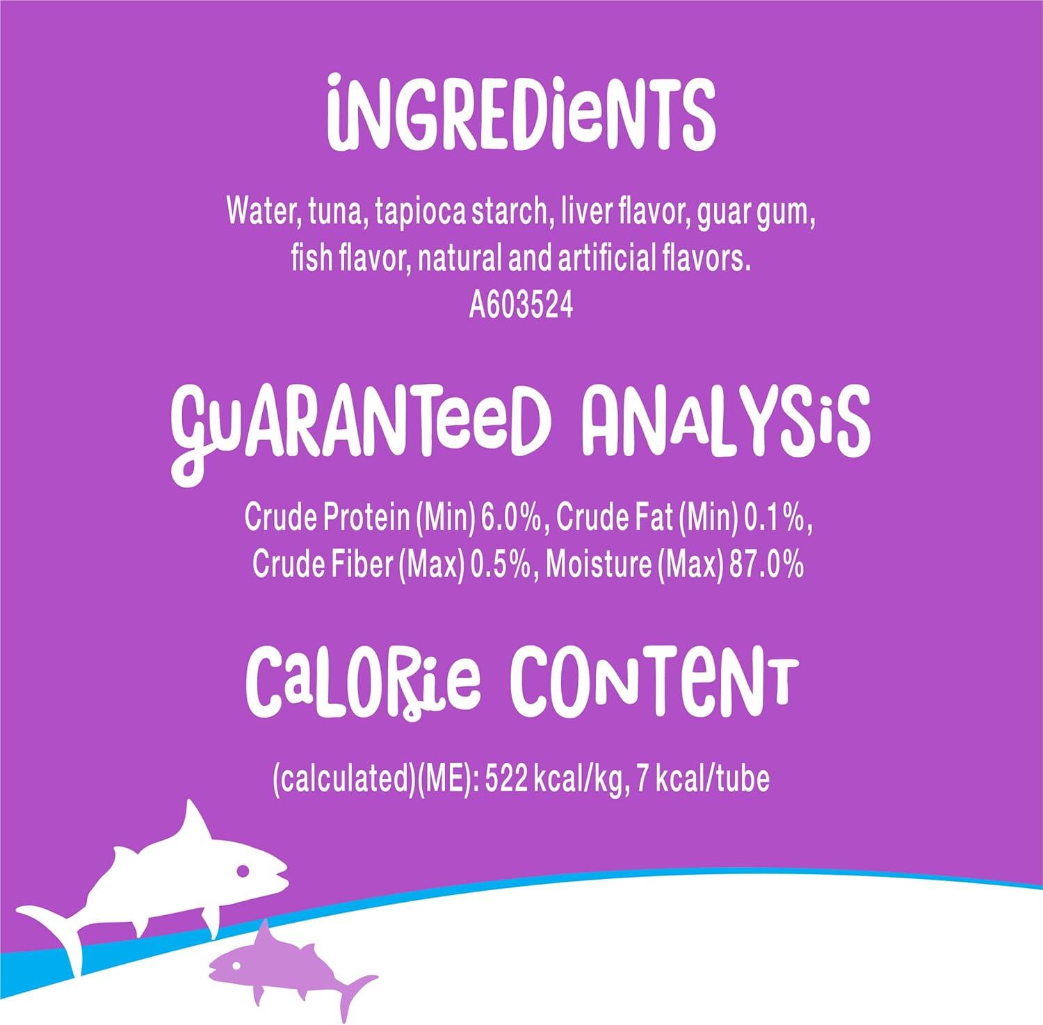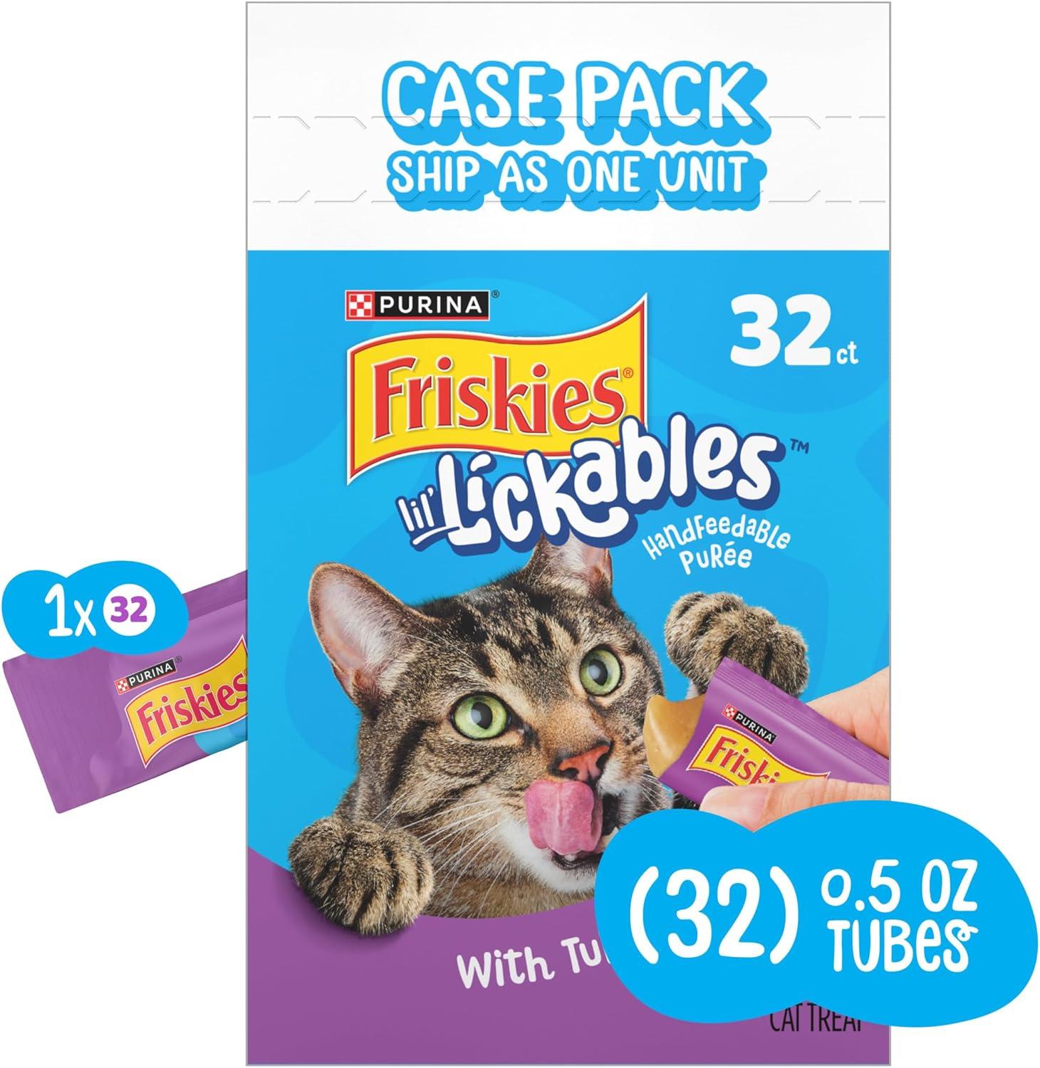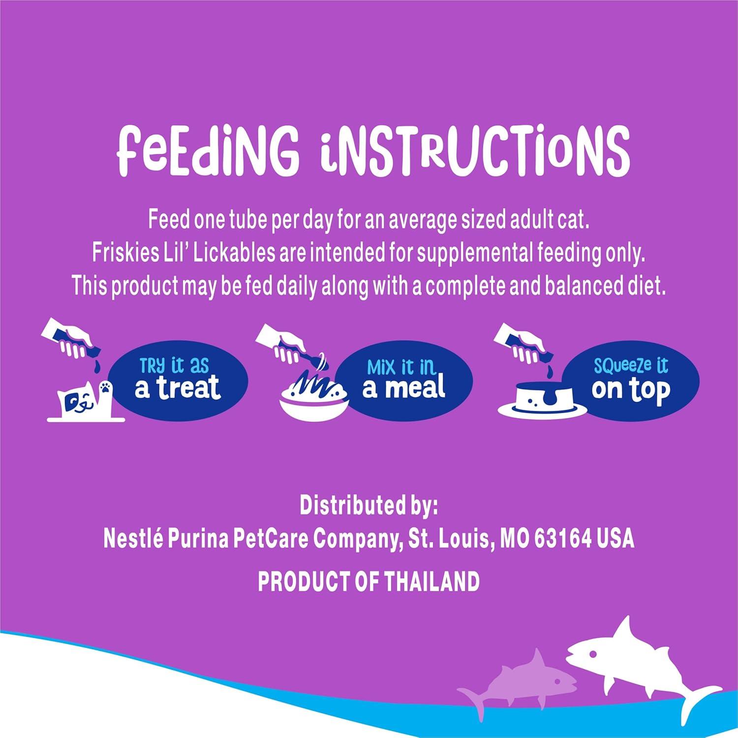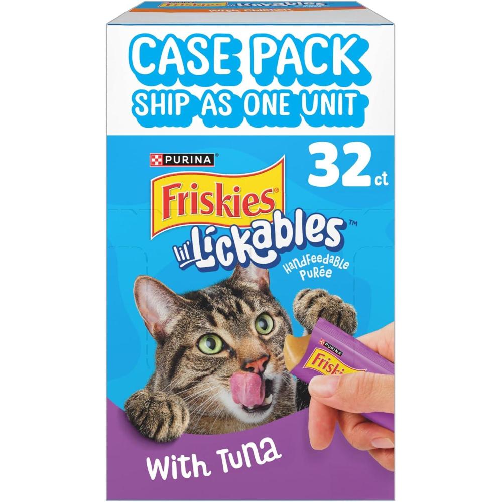 Wow your cat at snack time or mealtime with Purina Friskies lil’ Lickables Treats for Cats With Tuna. Made for snack time or to be added to her favorite kibble, these soft cat treats are lickable and easy to serve. They have a tasty creamy puree texture and come in convenient hand-held tubes with a tear-open top—simply tear and squeeze and she’ll enjoy the tasty puree, while you enjoy a bonding moment with your favorite feline. Made with real tuna, each tube measures 0.5 ounces—the perfect size for a delicious snack or to add a little extra flavor to any dry or wet food. Each tube of these wet cat treats helps support healthy hydration to keep her happily purring with satisfaction. Reward your cat with a savory treat made with tuna for cats, use them to share a moment between mealtimes, or add them to her bowl to support healthy hydration. Check out other flavors including Friskies lil’ Lickables With Chicken or With Ocean Whitefish to keep your cat’s taste buds delighted and add some variety to snack time.