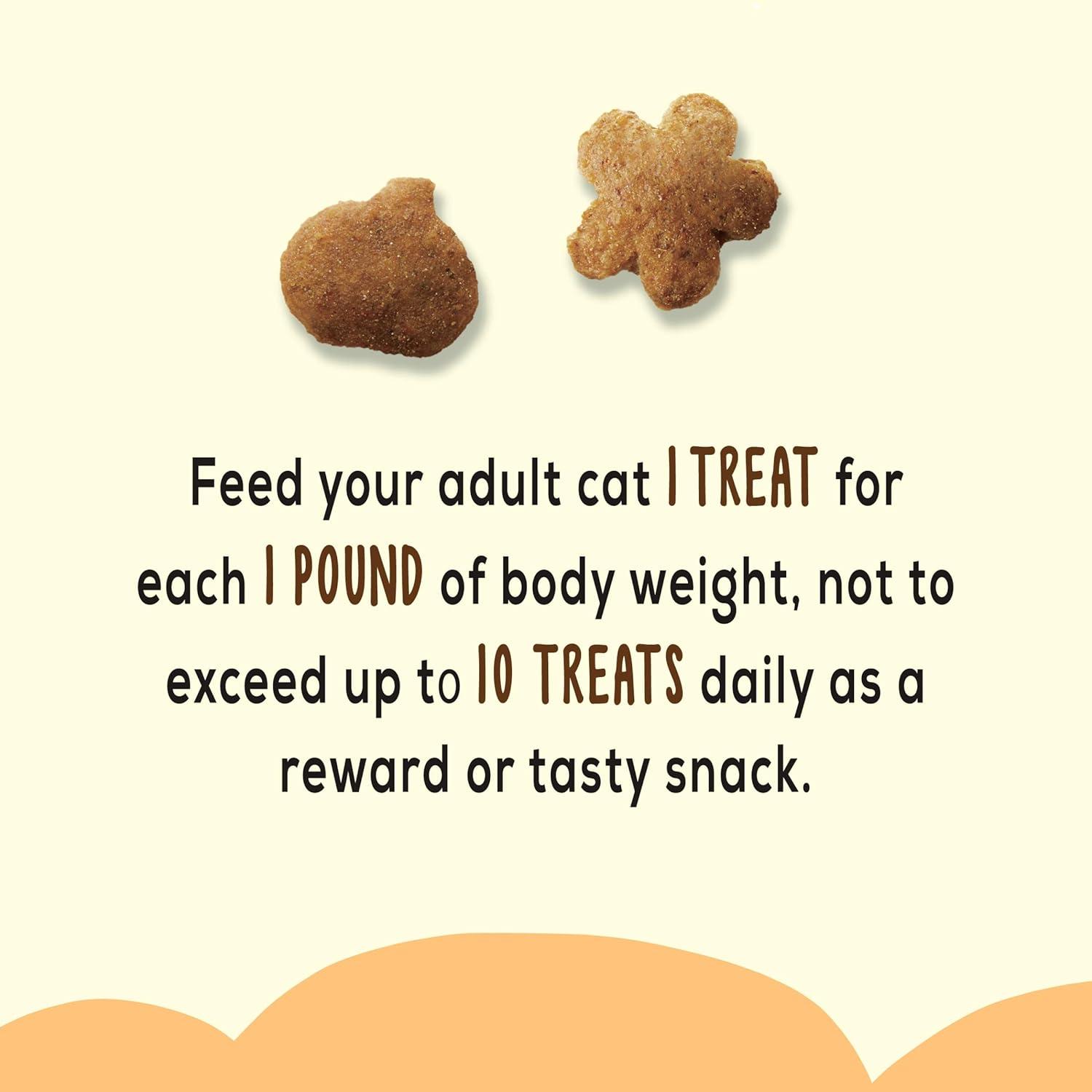 Crunchy texture of cat treats helps clean her teeth. Provides 100 percent complete and balanced nutrition for adult cats