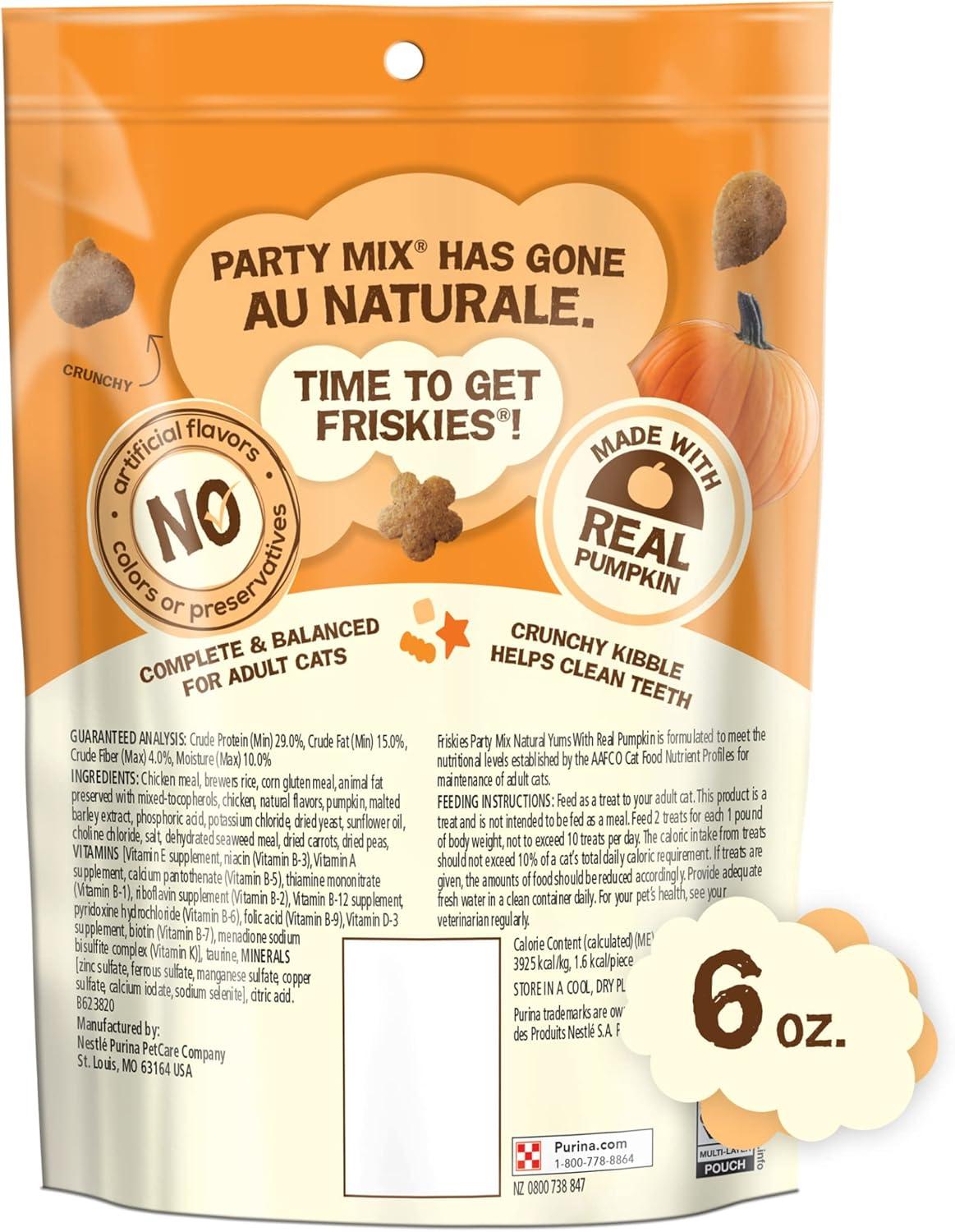imagePurina Friskies Made in USA Facilities Natural Cat Treats Party Mix Natural Yums With Pumpkin  6 6 oz Pouches