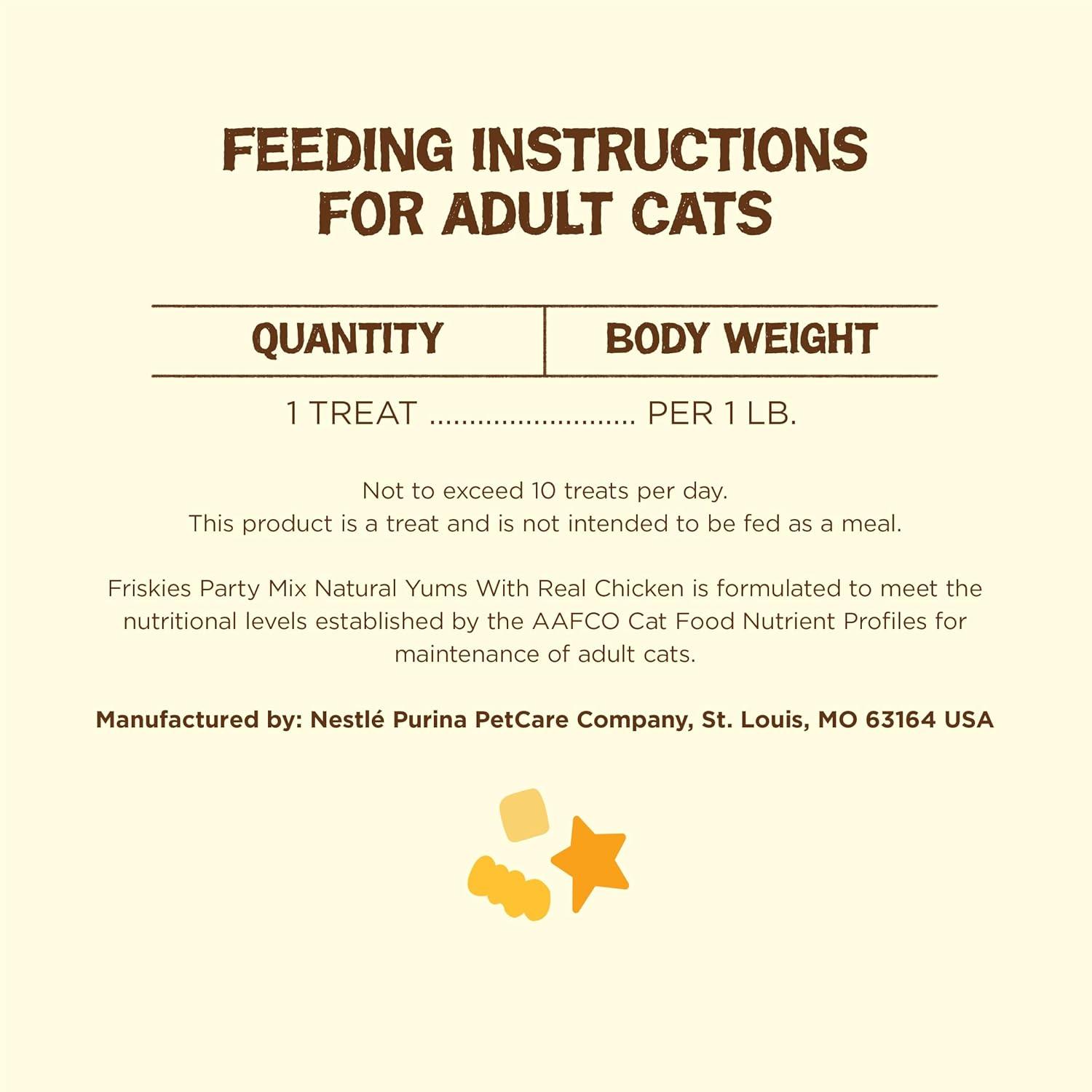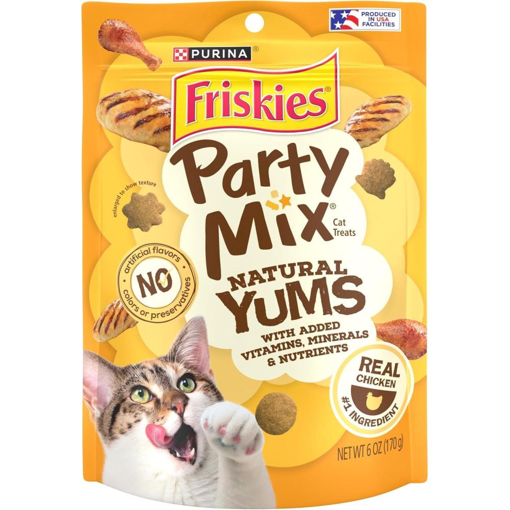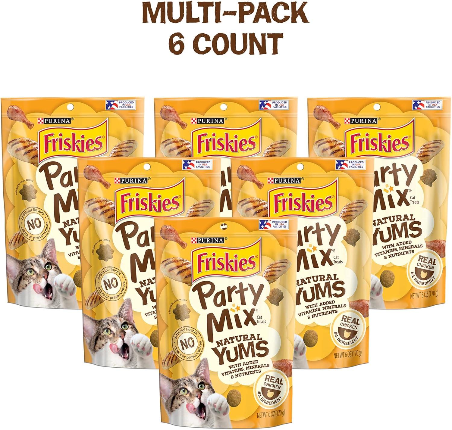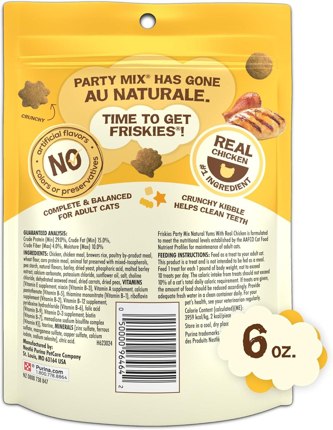 Purina Friskies Natural Cat Treats, Party Mix Natural Yums With Real Chicken & Vitamins, Minerals & Nutrients - (Pack of 6) 6 oz. Pouches(Chicken)