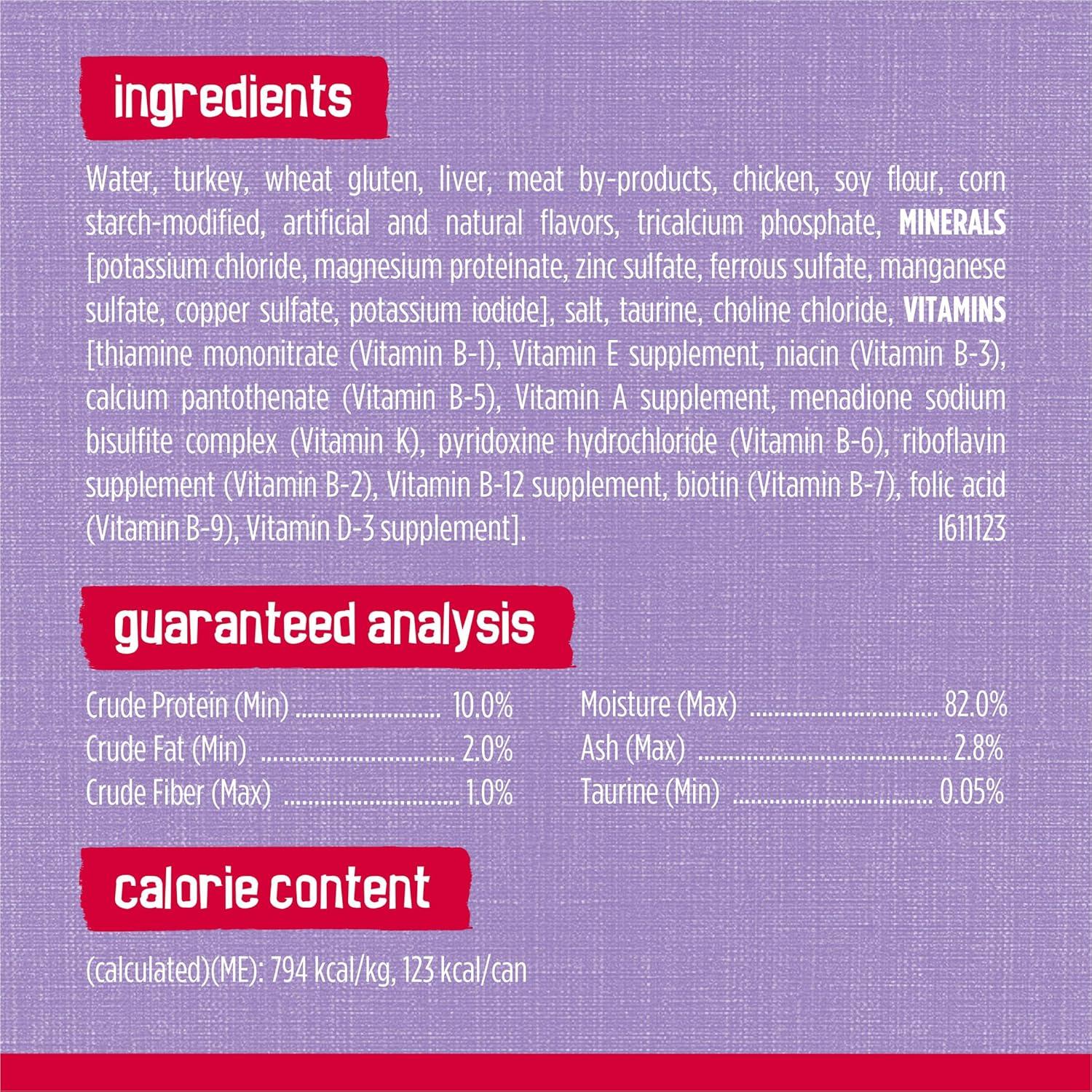 Create a delightful dining experience for your cat when you serve Purina Friskies Prime Filets Turkey Dinner in Gravy wet cat food for each meal. The shredded chunks with real turkey give her the savory taste of poultry she craves, and the decadent gravy adds moisture and even more flavor to every delectable bite that she'll lap off the plate. Let the enticing aroma and appetizing morsels capture her attention as you fill her dish, and take comfort knowing she gets the nutrients she requires each day. Each serving contains 100 percent complete and balanced nutrition for the healthy maintenance of adult cats, so she can enjoy this Friskies Prime Filets food at every stage of her playful, happy adult life. You can keep her tummy happy and bring a purr to her whiskers with each can of this Friskies Prime Filets Turkey Dinner recipe. Make this wet cat food part of your feline's daily diet, and show her just how much you pay attention to her tastes.