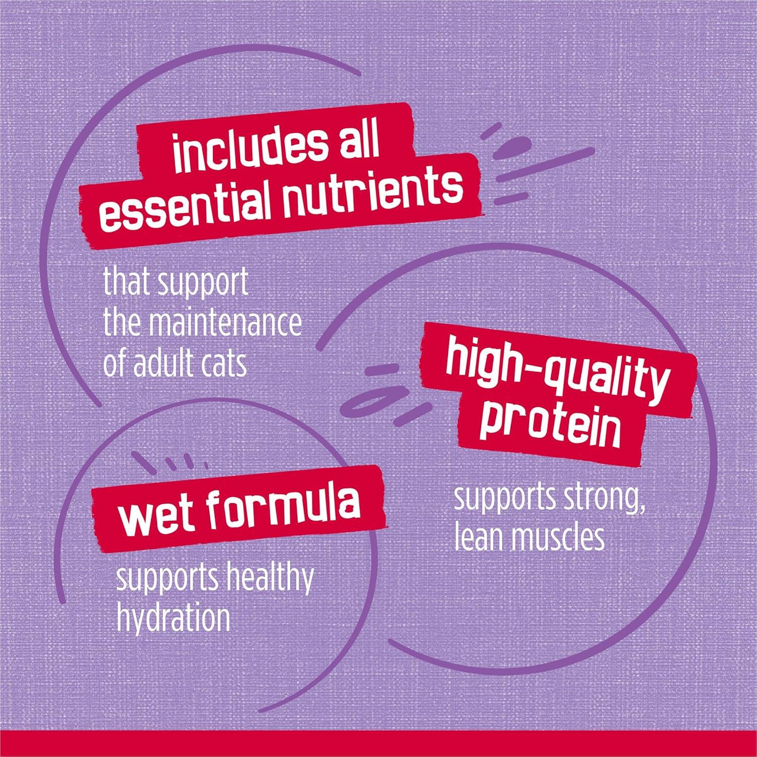 Friskies Prime Filets wet cat food with shredded chunks to offer a tender, tempting texture. 100 percent complete and balanced nutrition for adult cats with no artificial colors or preservatives