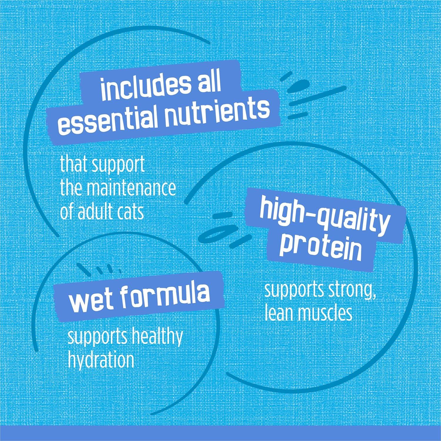 Quench your cat's cravings for seafood flavor by serving her Purina Friskies Shreds With Ocean Whitefish and Tuna in Sauce wet cat food. Real chicken and salmon deliver the taste she loves, while letting you feel good about giving her a meal made with high-quality ingredients. Each bite of this Purina wet cat food features tender shreds for a texture she can sink her teeth into, and a savory sauce balances out the recipe, providing added moisture and flavor. Let the delicious aroma guide her to you at mealtime, and watch as she happily nibbles her way to a satisfied belly. With 100 percent complete and balanced nutrition for adult cats and kittens, this Purina Friskies Shreds recipe can follow her through every stage of life for consistency in her daily diet. Show your cat she's the center of your world by filling her dish with this mouthwatering Friskies wet cat food, made For Cats. By Cats.