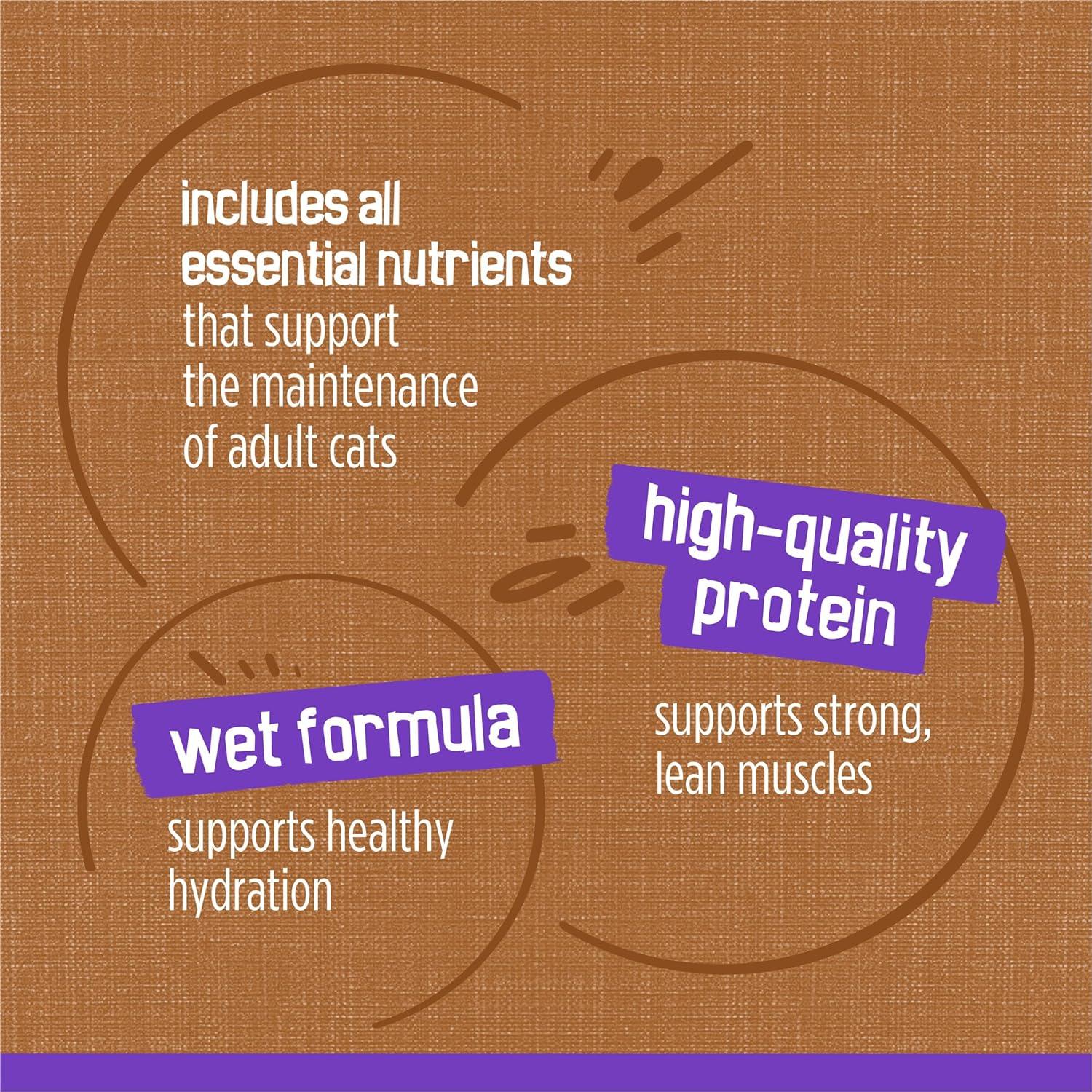 Wet food for cats formulated to meet or exceed industry standards for cat food and manufactured in Purina-owned U.S. facilities