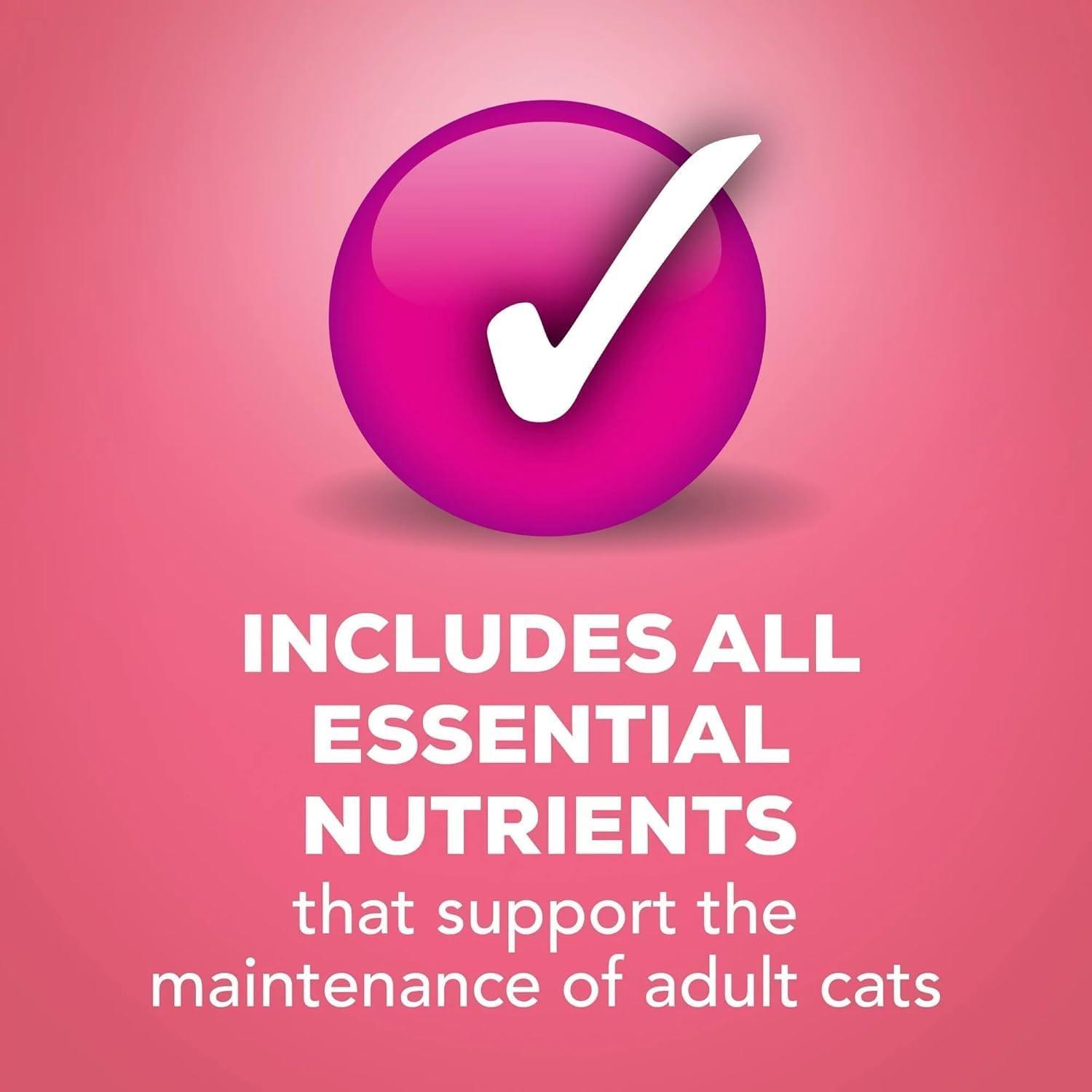 Pate cat food containing essential vitamins and minerals and 100 percent complete and balanced nutrition for adult cats with no artificial colors or preservatives